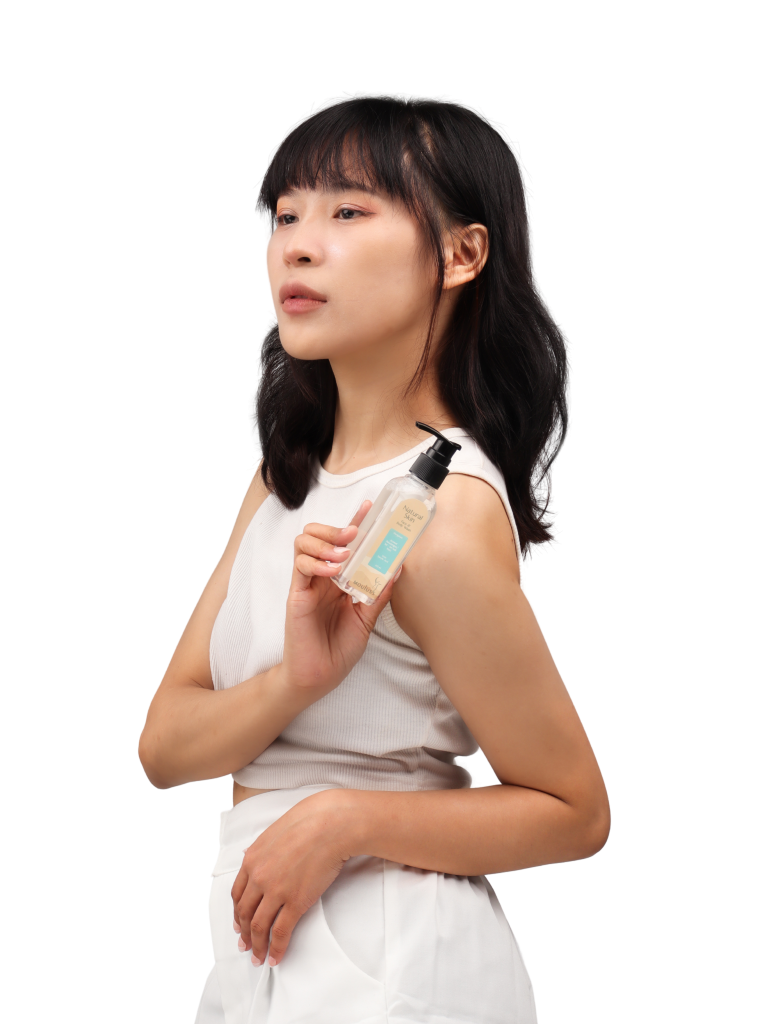 - Tuangkan Mouluss Natural Skin ke Telapak Tangan