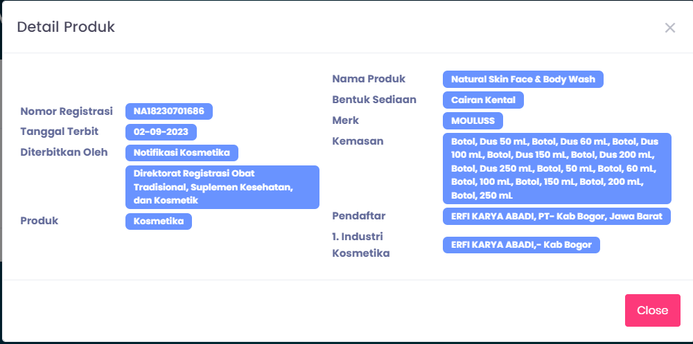 Mouluss telah lulus berbagai uji lab dan resmi terdaftar BPOM dengan nomor registrasi NA18230701686